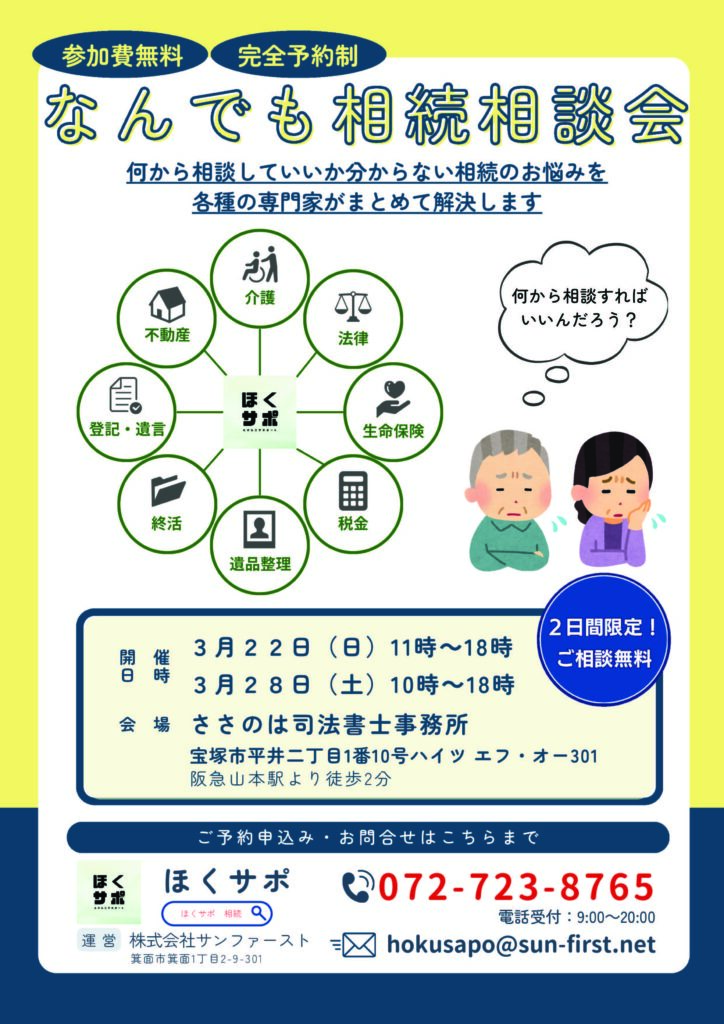 ご都合の良い日時をご連絡いただければ、ほくサポ内での専門家の日程を調整します。